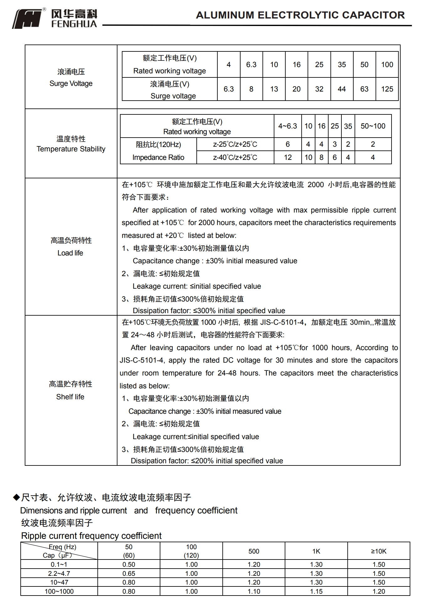 * 壽命: 105℃ 2000 小時