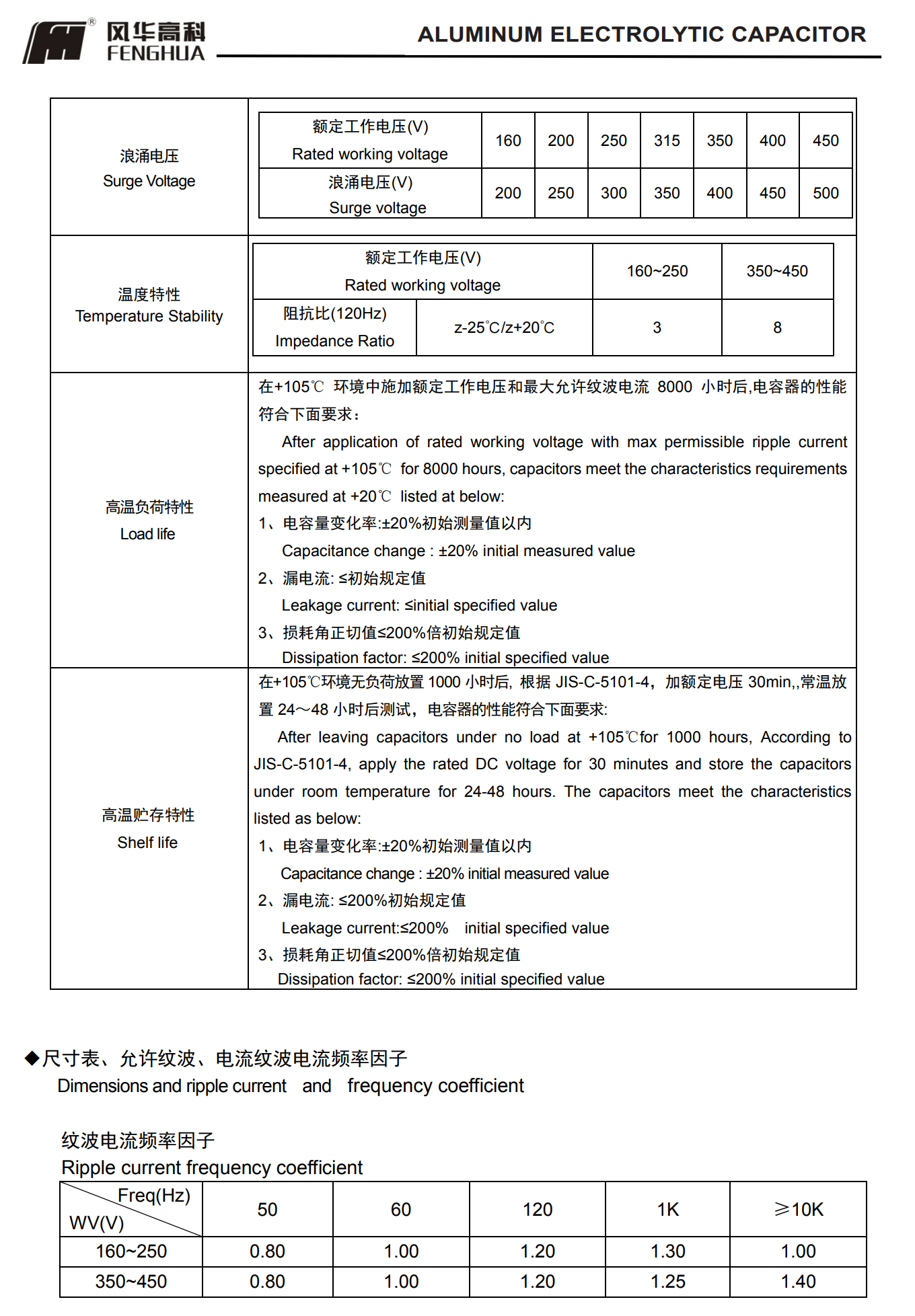 * 壽命: 105℃ 8000 小時