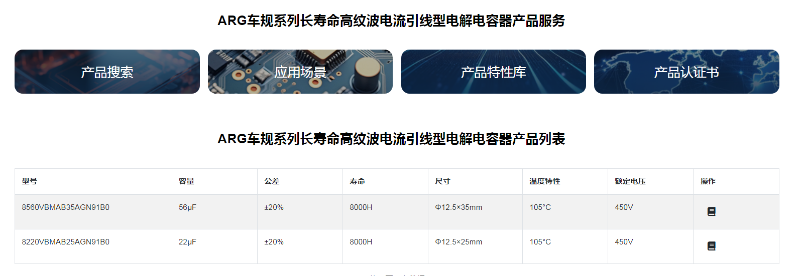 ■ARG車規(guī)系列長壽命高紋波電流引線型電解電容器