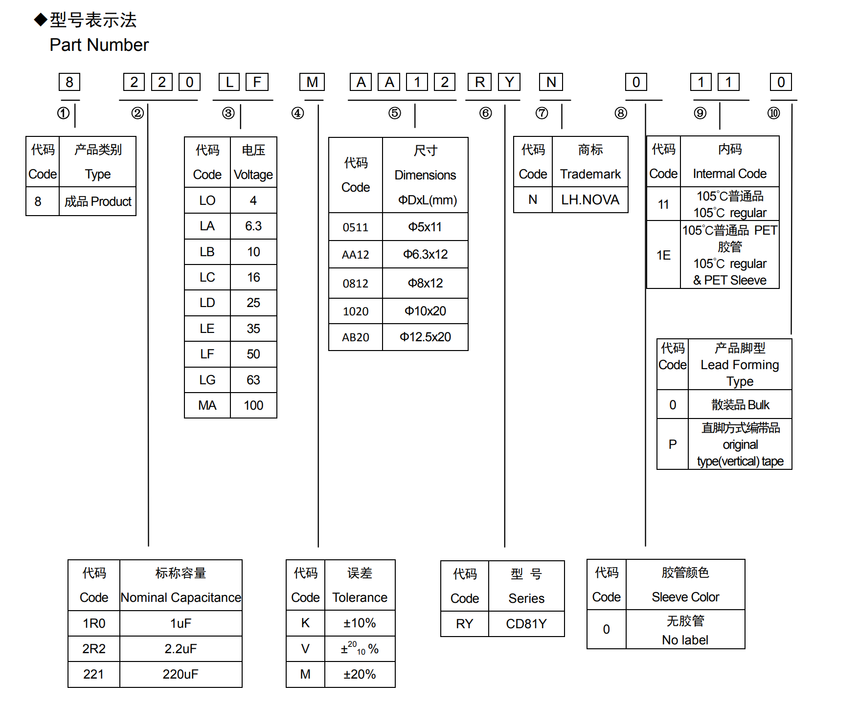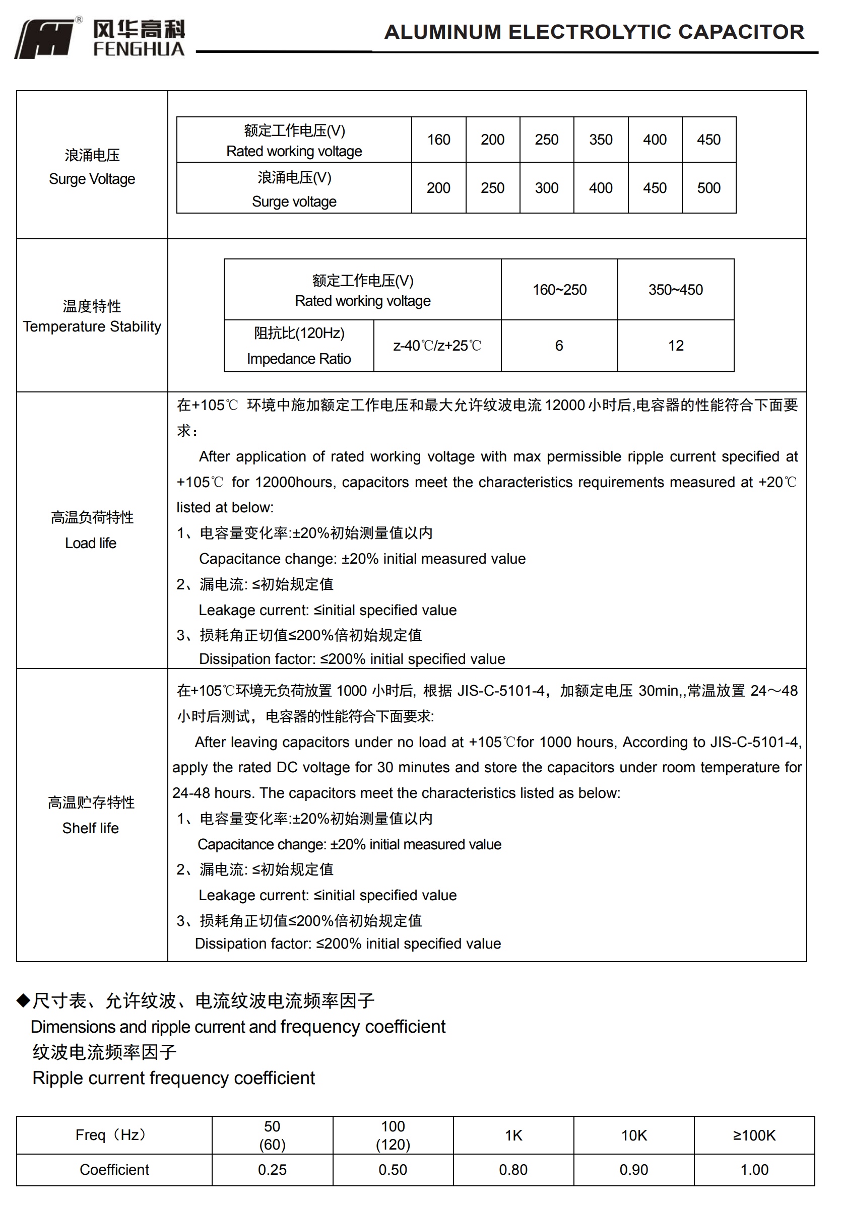 * 壽命: 105℃ 12000 小時