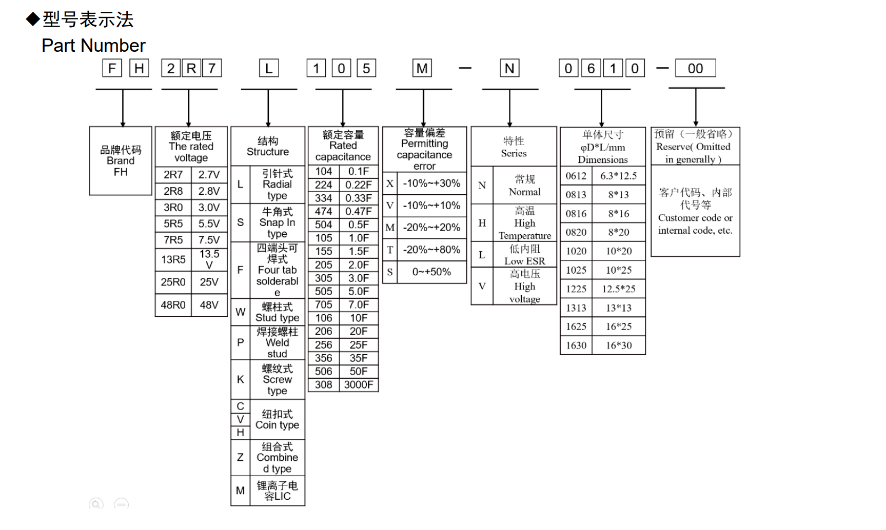 ■高電壓系列圓柱型超級電容器◆特征* 內(nèi)阻低,功率密度高* 自放電率小,72 小時自放電<20%*優(yōu)異的循環(huán)壽命,庫侖效率達 95%以上*工作溫度范圍寬;*綠色環(huán)保,滿足 RoHs 要求◆應用* 智能儀表、行車記錄儀、照明燈具、智能家居、工業(yè)控制;* 稅控收款機、數(shù)碼相機、電動工具、電動玩具、備用電源;*無線節(jié)能鼠標、無線手